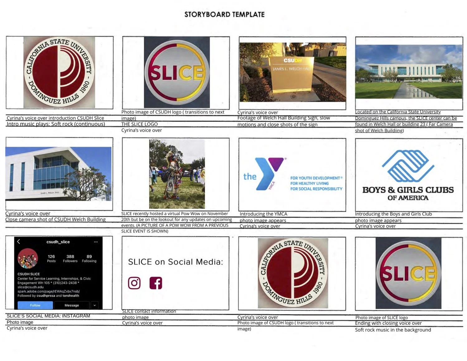 I created this storyboard template in order to illiterate what our organization’s PSA would consist of. This was a great way to include a visual representation of the project. This was my first time creating a storyboard template and it was great to have the experience to create something new and successfully execute it on the project and create a PSA from it.